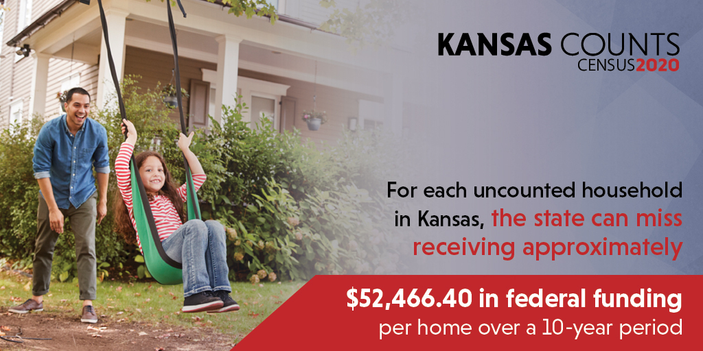 Did you know an under-count in Kansas means that your community could miss out on approximately $52,466.40 in federal funding (over 10 years) for each household that is missed in the 2020 Census?