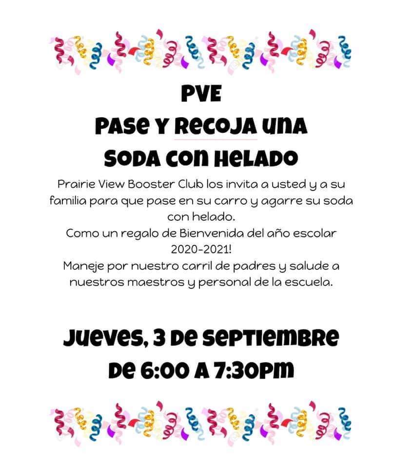 All PVE Families are invited to a new style of ice cream social this year! Families are invited to stay in your car and drive thru the parent loop Thursday evening between 6-7:30pm to receive a free soda & ice cream cup to make your own homemade Soda Float at your house. Come wave hello to your teachers & enjoy a socially distant sweet treat. Let’s celebrate the start of the new school year together!