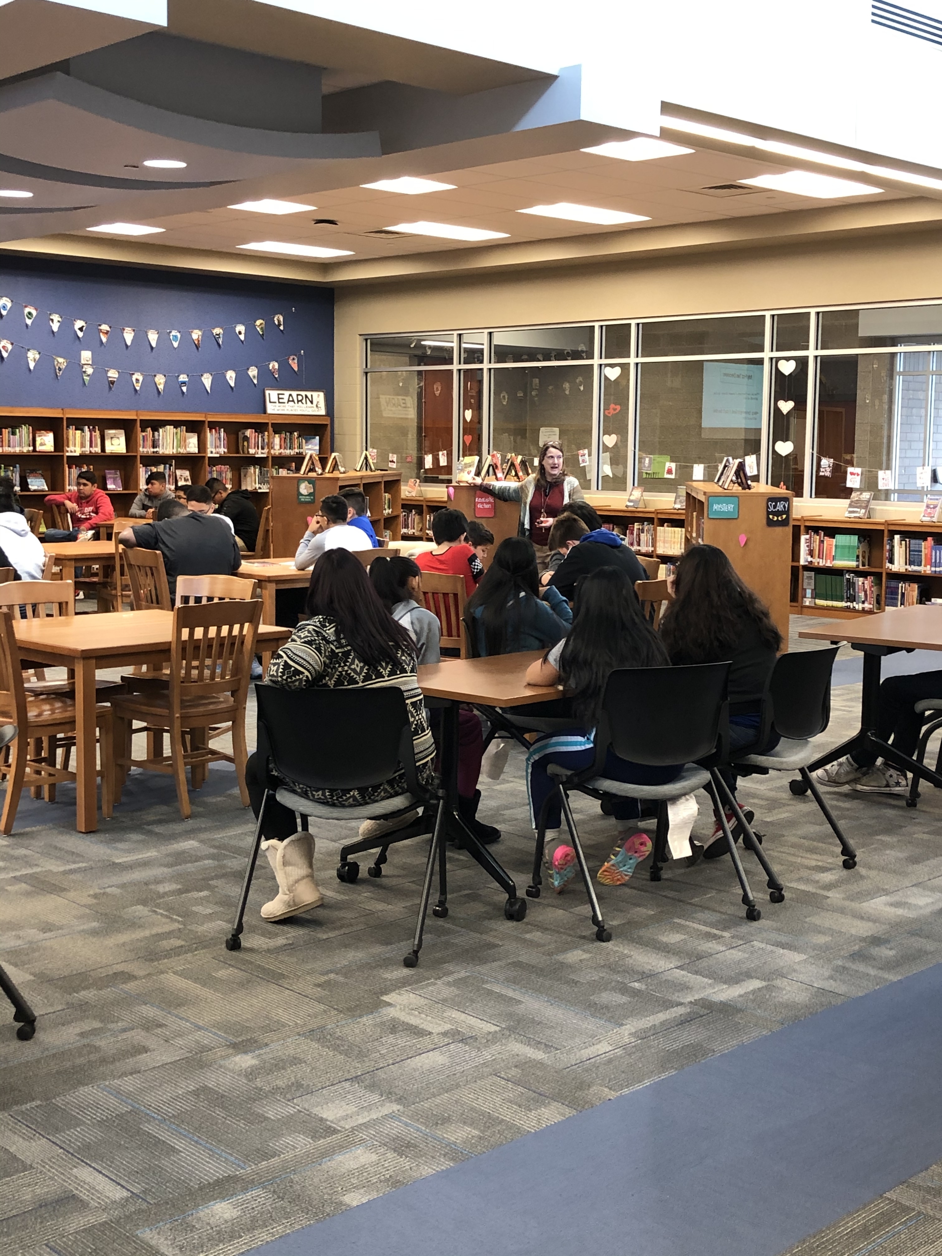 Author Lora Jones speaking with SRMS 8th graders today